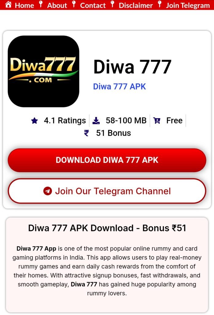 Diwa 777 App Online Platform Download Get-Sing Up Bonus Rs.89-5000 Free………